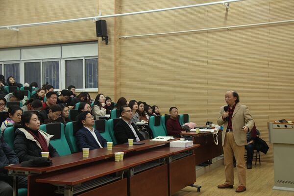 汉风教授,系国家一级美术师,河北省美术家协会副主席,中国美术家协会会员,河北省书画院副院长,第十届、第十一届河北省政协常委,河北省人民政府文史馆特约研究员,河北省政协文史馆馆员。讲座中,汉风教授围绕“艺术创作的秘密”主题,讲述了其对艺术的感悟,对艺术创作中博大情怀、独特理念、自由精神、生命与艺术内在合一的理解。从意识在艺术创造中的作用,意识作为艺术创造过程中伦理及价值的把关者,潜意识对于艺术创造的重要意义等方面阐述了意识形态与艺术创造的关系。从直觉和潜意识的觉醒对于艺术创造的意义、打破恒常性对艺术的意义以及时空观的更新对于艺术创作的影响等方面剖析了艺术创造的主要特征。讲座最后,汉风教授与现场师生就围绕艺术创作进行了互动交流。