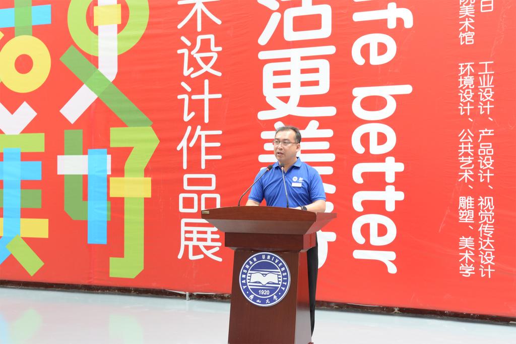 党委常委、副校长陈国强宣布“艺术让生活更美好”美术设计作品展开幕,嘉宾领导、返校校友一同参观了展览。
