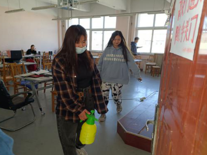 各个专业教室进行了消毒。工作中,志愿者们认真细致,确保不留死角,为师生营造卫生的教室环境。