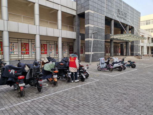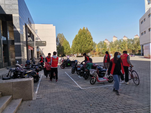 就位,引导同学们将车子有序放在规定范围内,对已停车辆进行规范管理。