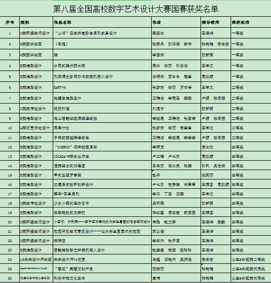 获得第八届全国高校数字艺术设计大赛“卓越贡献奖”。