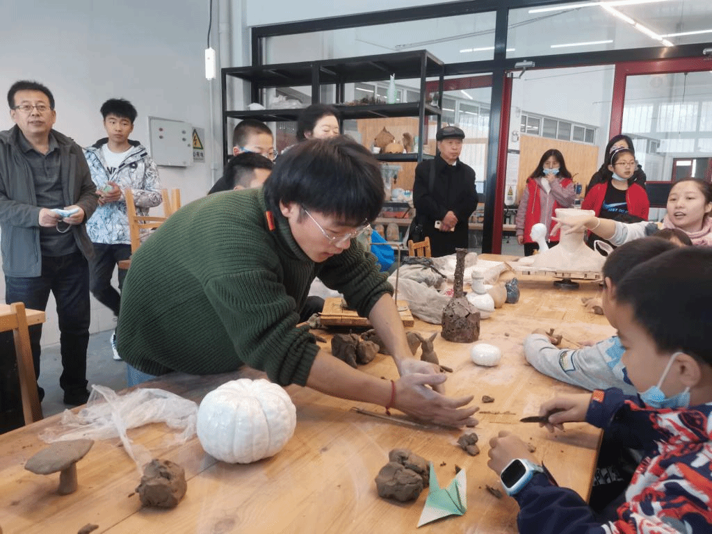 艺术作品展、设计成果展;在美术馆大空间实验室,师生们积极参与到篆刻艺术、剪纸艺术、陶艺的体验当中,跟着老师的讲解进行艺术制作;在美术馆1楼相应实验室,师生们观看激光雕刻、3D打印、虚拟现实等,感受艺术与科技融合的魅力;在美术馆相应工作室,澳门娱乐场
