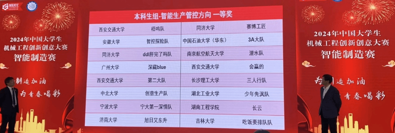 领导高度重视学生创新能力培养,积极遴选优秀教师精心指导,院团委广泛动员学生踊跃参与,工程训练中心充分发挥创新实训基地作用。在智能制造师生的共同努力下,参赛队员团结协作、勇于创新、不断挑战自我,在285所高校、1927支代表队参与的省赛选拔赛中披荆斩棘、脱颖而出,共获得15项省级奖项,6支队伍成功晋级全国总决赛。在全国总决赛中,再次与126所高校、261支参赛队伍展开激烈角逐,最终斩获一等奖1项、二等奖4项、三等奖3项共计8项全国奖的骄人战绩,其中赵秀霞老师指导的由智造2022级张宇轩、龚钰琳、机工2023级刘衡三位同学组建的旭日又东升队勇夺全国一等奖,实现了澳门娱乐场