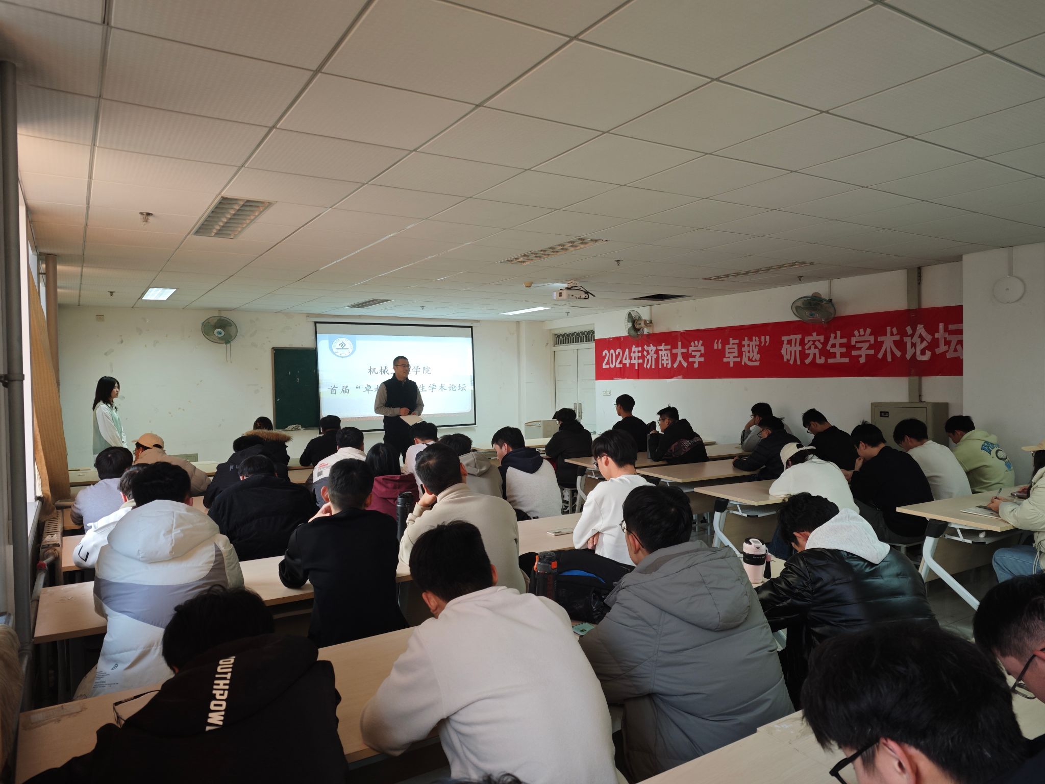 在机械楼A506举办首届“卓越”研究生学术论坛。论坛邀请王高琦副教授担任点评嘉宾,研究生辅导员和90余名研究生代表参加了活动。