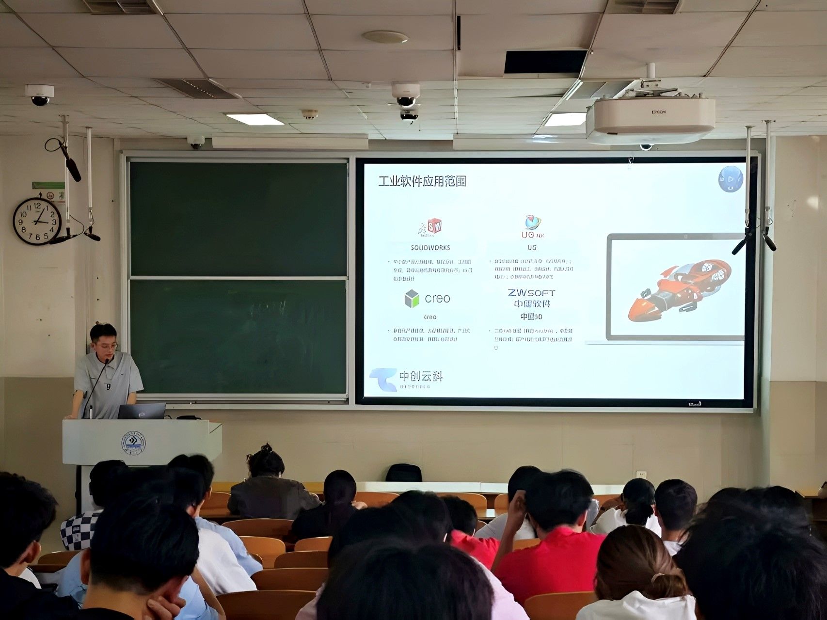 举办科技文化艺术节首场讲座,吸引100余名师生参会,特邀中创云科教育科技有限公司王晨宇经理主讲工业软件发展与应用。王经理主要围绕工业软件发展历程、不同软件特点、SolidWorks软件及插件应用展开讲解,结合案例演示3D建模、仿真分析等功能,重点介绍了从设计到制造的集成解决方案,内容兼具专业性与实用性。现场学生反应热烈,专注记录关键知识点,尤其对SolidWorks的3D PMI标注、机电协同设计等功能表现出浓厚兴趣。答疑环节中,学生踊跃提问,涵盖软件学习路径、赛事应用技巧等问题,王经理逐一细致解答。与会学生表示,讲座不仅明晰了工业软件在机械设计中的核心作用,还为后续参与科创竞赛、毕业设计提供了技术方向,更激发了探索数字化设计的热情。此次讲座为科技文化艺术节拉开良好序幕,为师生搭建了工业软件学习交流平台,助力提升学生工程实践与创新能力。