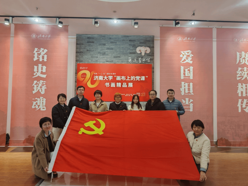 机电系教工党支部以“传承‘一二·九’精神践行育人使命”为主题,组织全体党员开展主题党日活动,参观纪念“一二·九”运动90周年“画布上的党课”书画精品展。