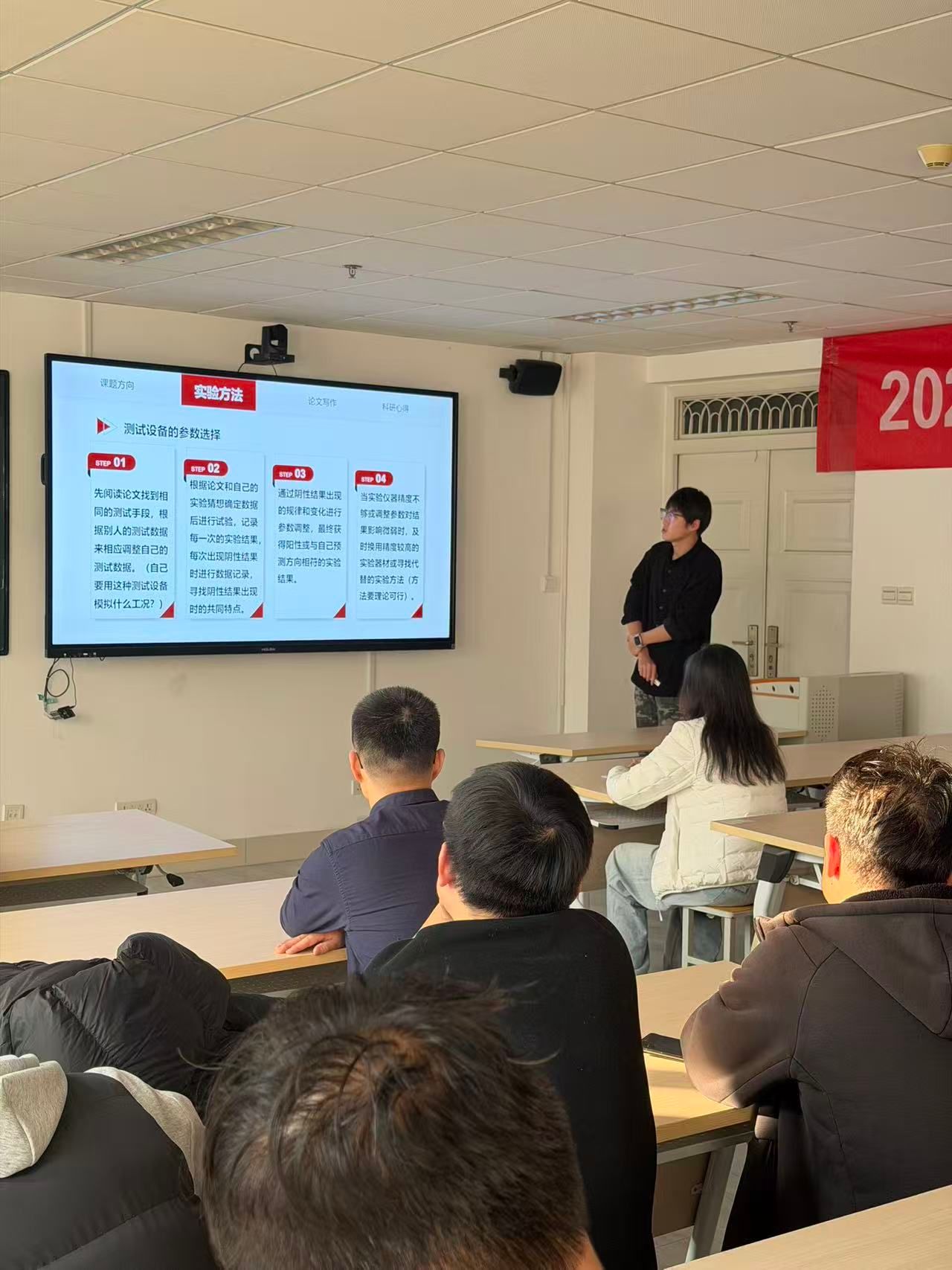 闫春成同学围绕课题选择、实验开展、论文写作与专利检索等方面展开分享。他建议研一阶段应尽快依托导师研究方向、企业合作项目或师兄师姐课题传承确定研究方向,以便高效获取指导与实验资源。在实验方法上,他以激光熔覆技术为例,详细介绍了设备参数调整技巧,并强调测试与表征设备使用时,应先通过文献参考同类研究的参数设置,再结合自身实验猜想开展实践,同时做好阴性结果的记录与分析,及时优化实验方案。论文写作方面,强调图表色调统一与清晰度的重要性,提出论文撰写需注重“详细性、逻辑性、专业性”,避免口语化表达与不当表述;翻译环节可结合知网翻译、ChatGPT等工具,确保专业术语的准确性与表达的流畅性。此外,他还分享了sciencedirect等投稿期刊检索渠道,以及佰腾网、国家知识产权局等专利检索平台的使用方法,为同学们的学术成果转化提供了实用指引。