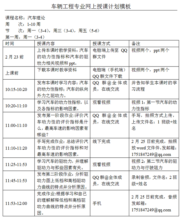 (a)《汽车理论》网上授课计划