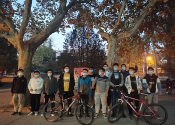 青年志愿者中心义务修车服务队于校医院门口开展义务修车志愿服务活动。